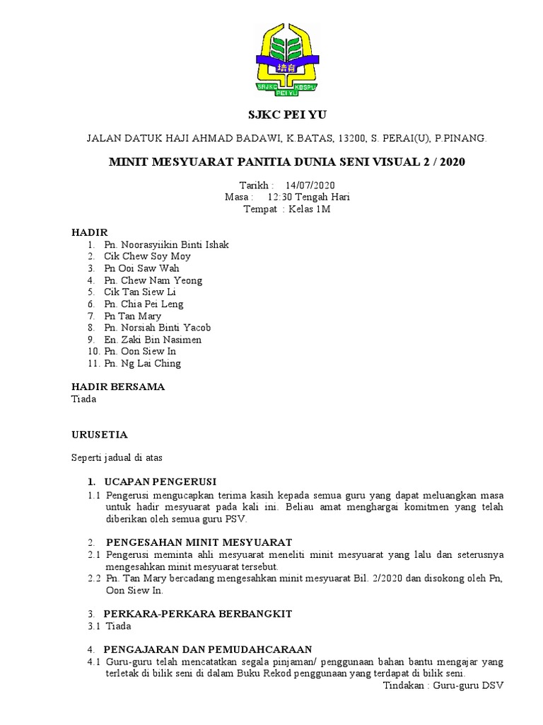 2020 Minit Mesyuarat Kali Kedua Pdf